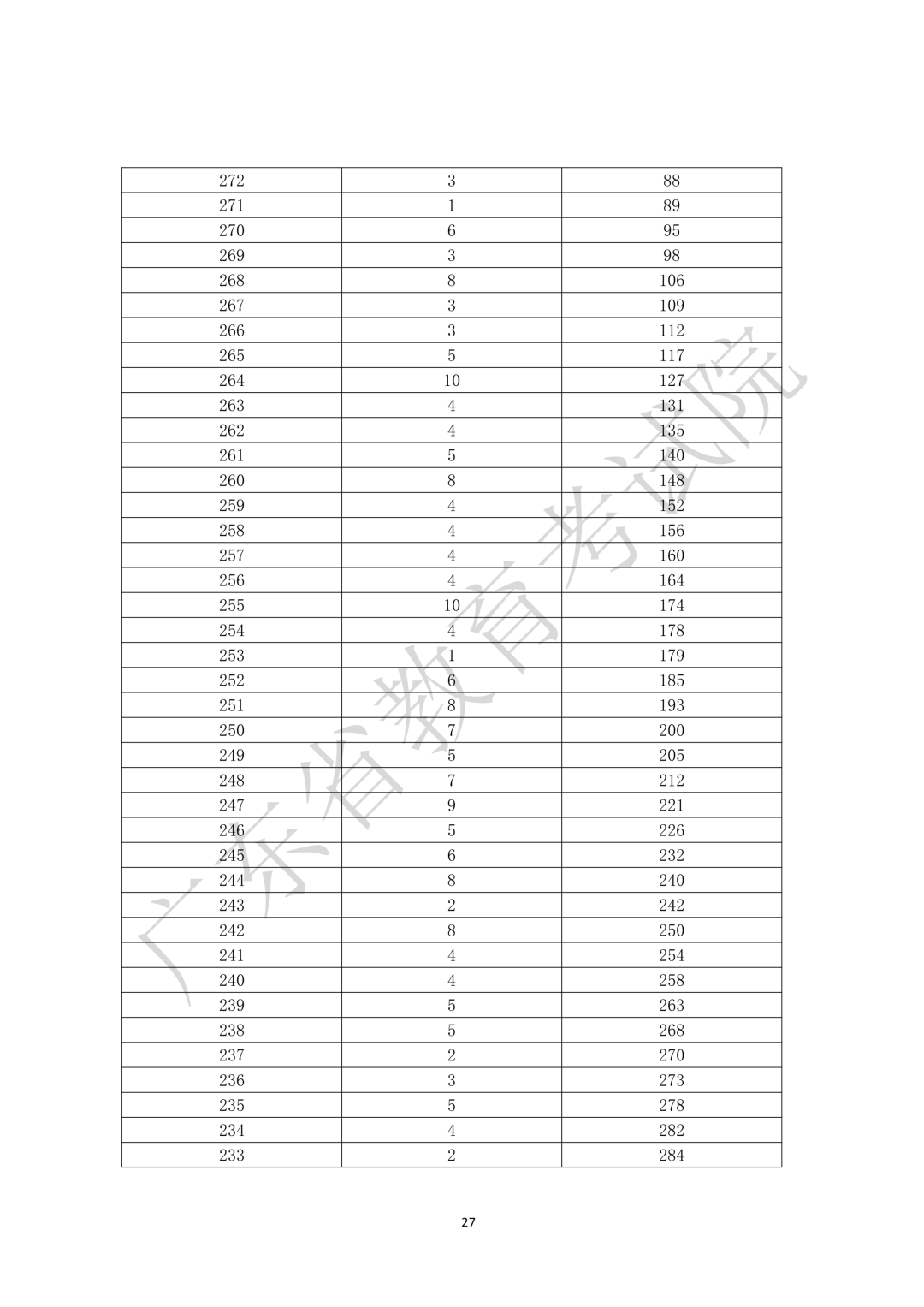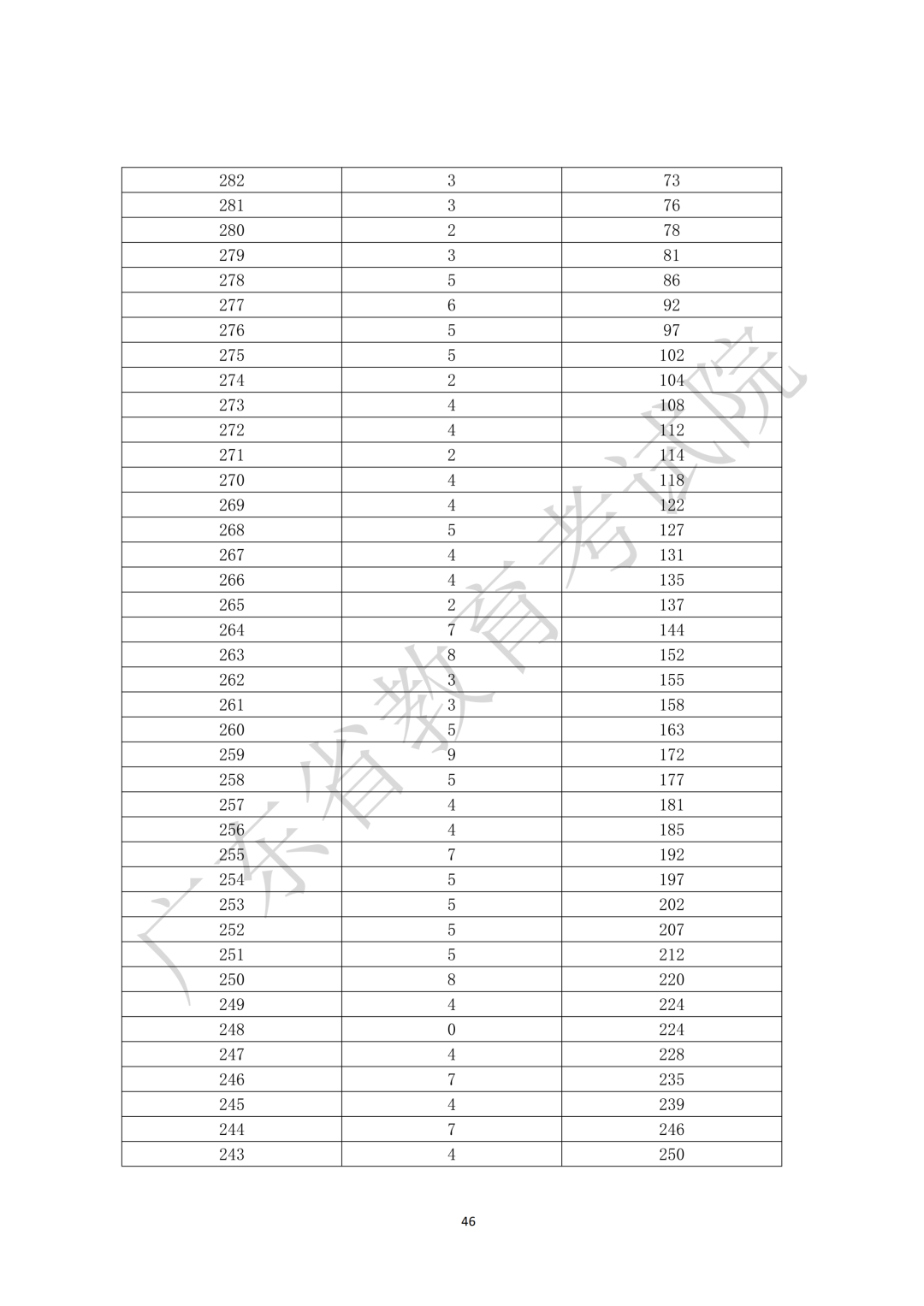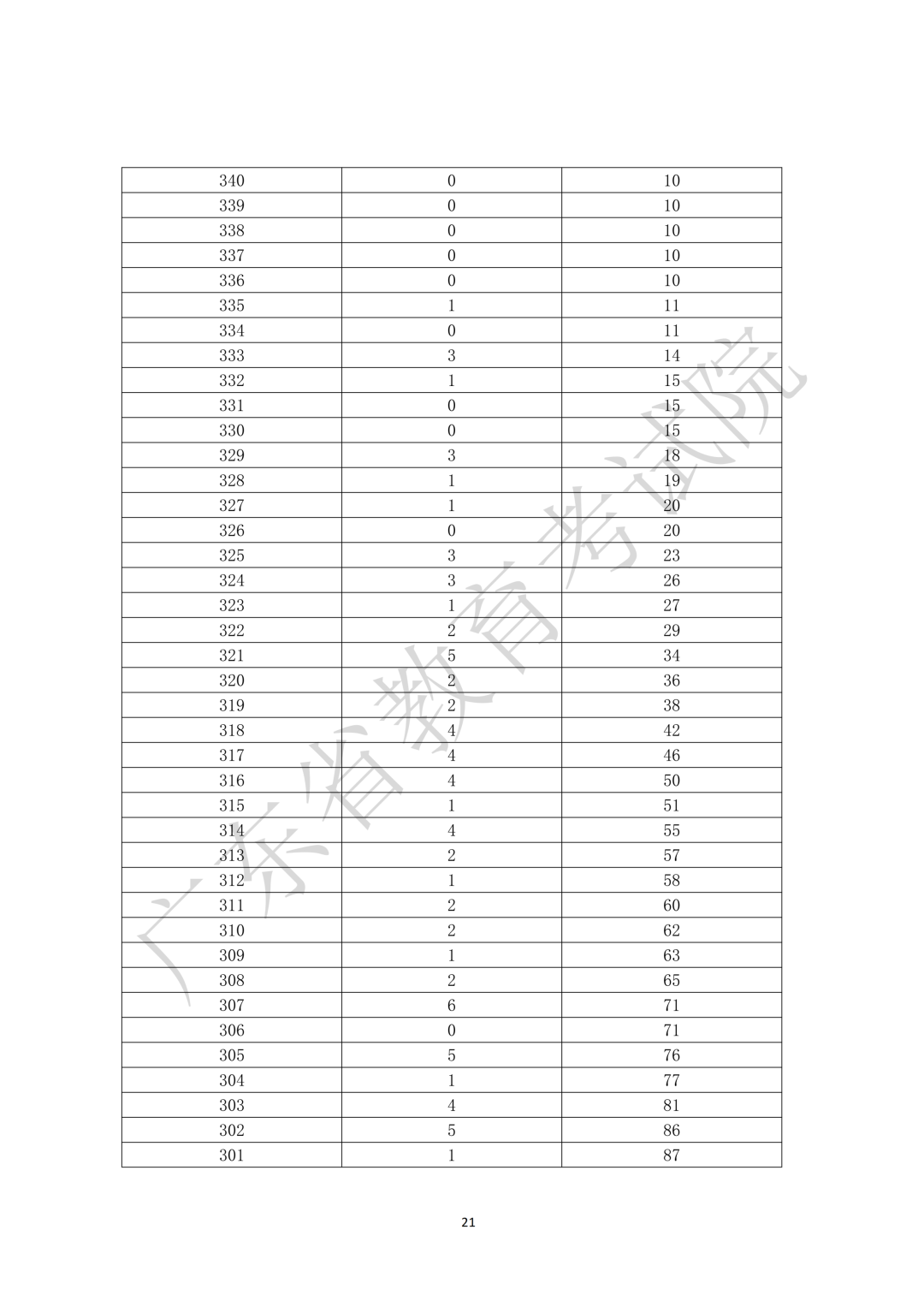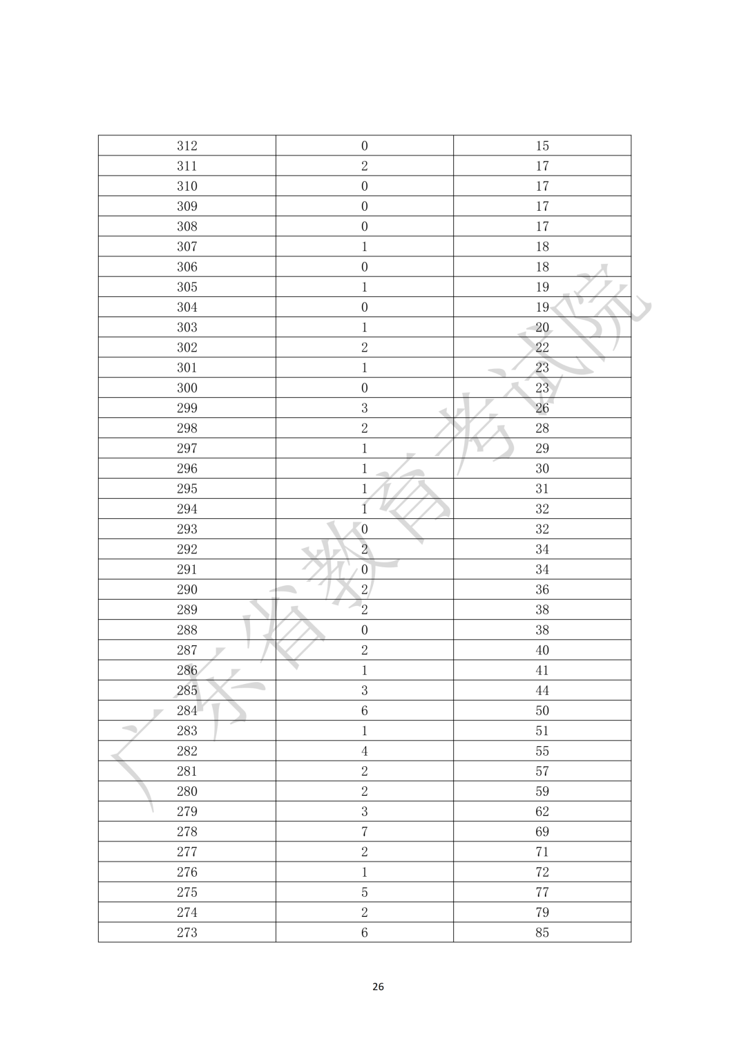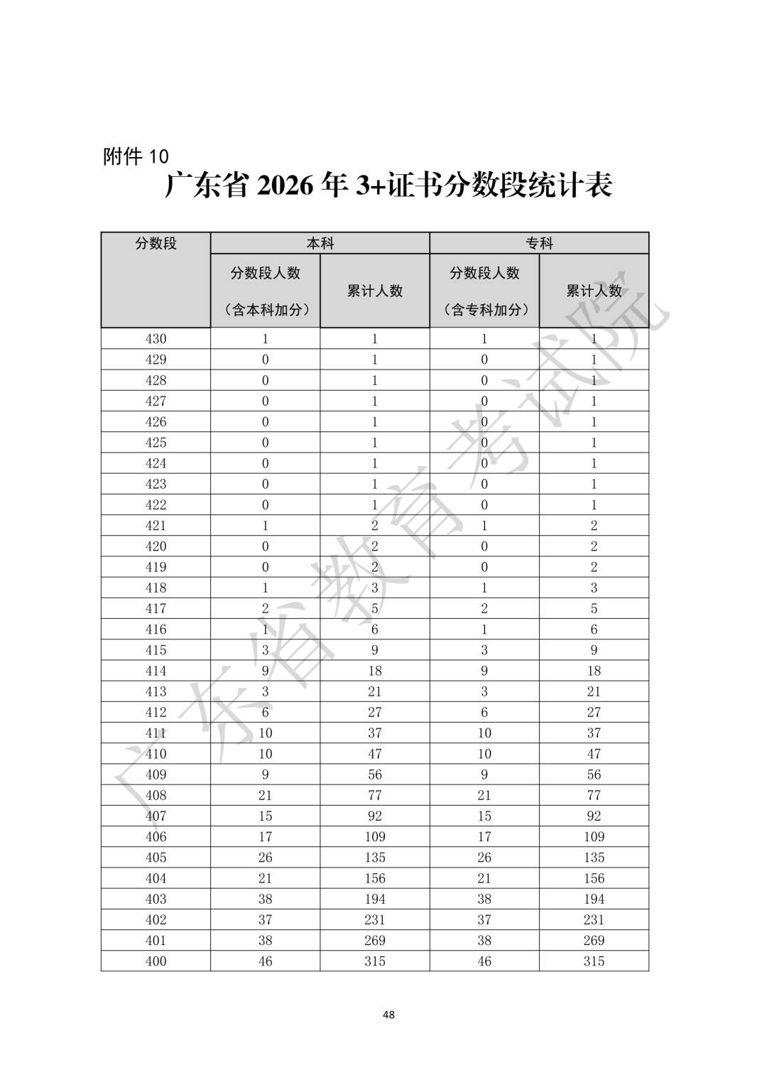 10.广东省2026年3+证书分数段统计表
