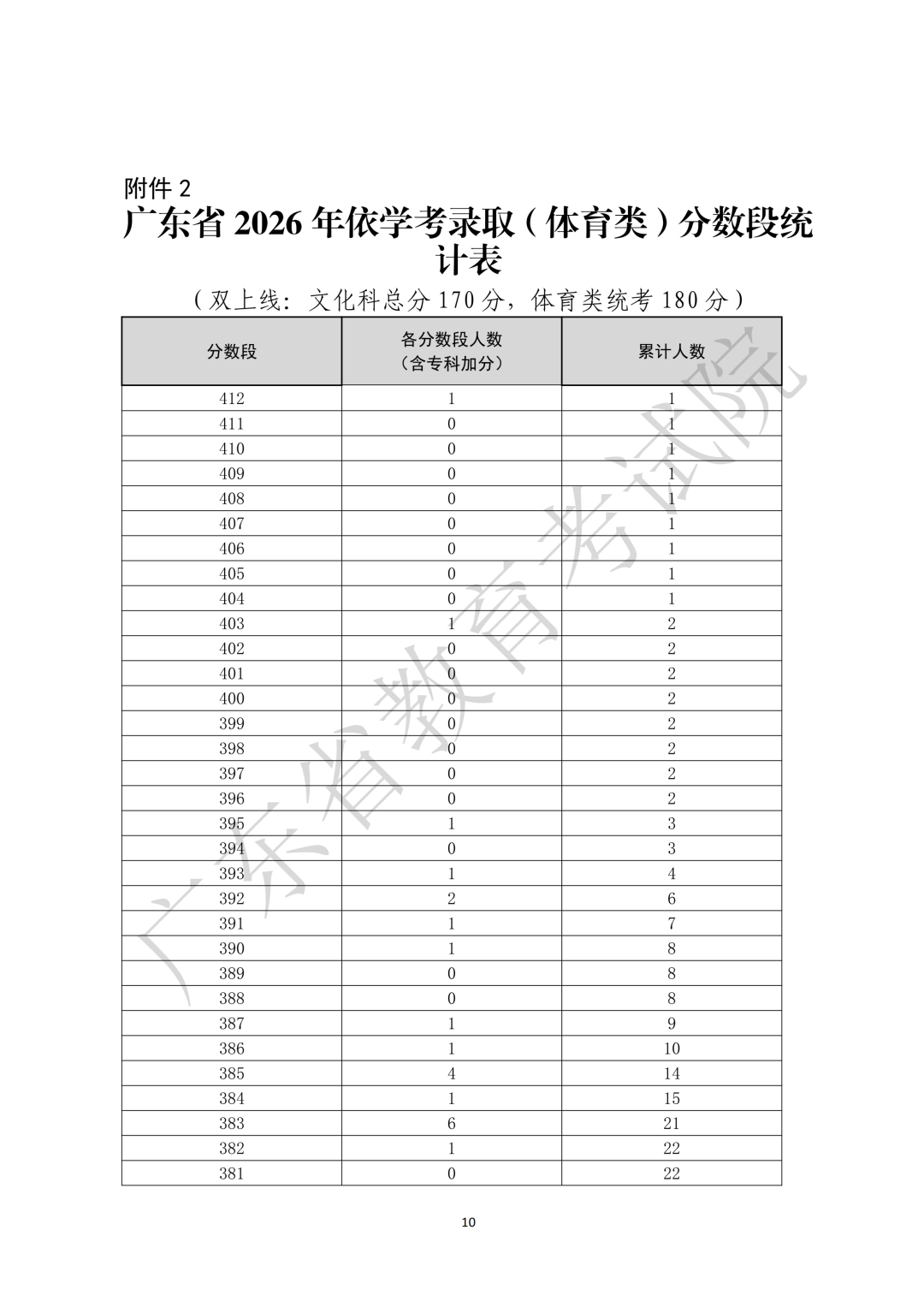 2.广东省2026年依学考录取(体育类)分数段统计表