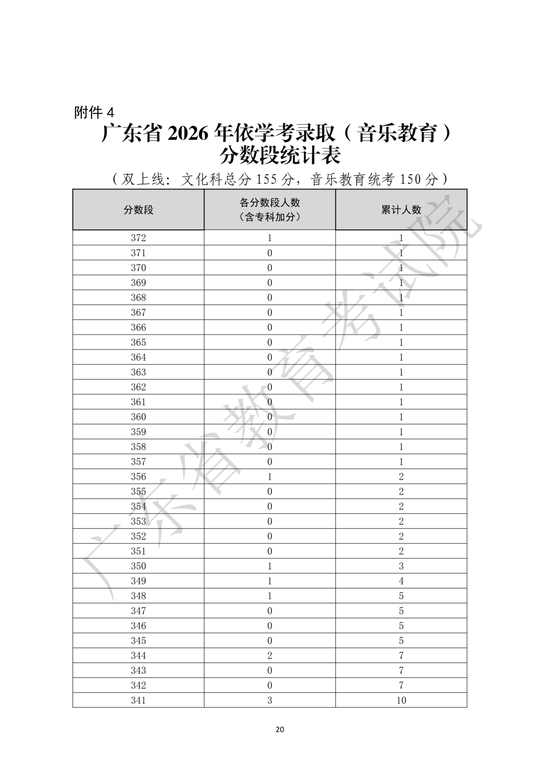 4.广东省2026年依学考录取(音乐教育)分数段统计表