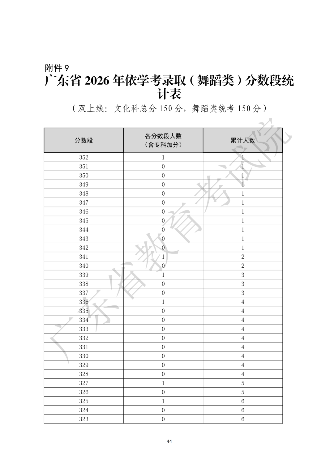9.广东省2026年依学考录取(舞蹈类)分数段统计表