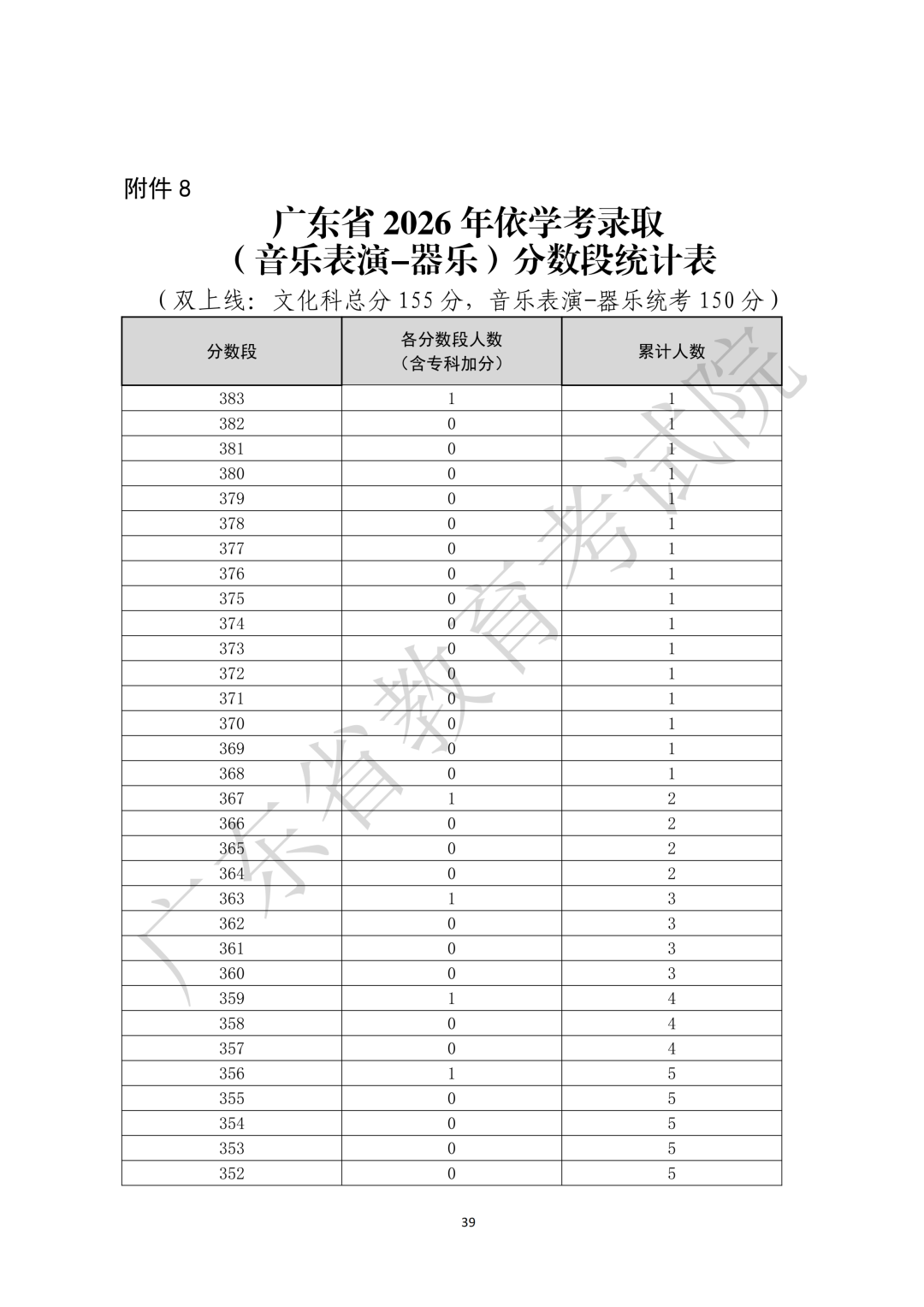 8.广东省2026年依学考录取(音乐表演-器乐)分数段统计表