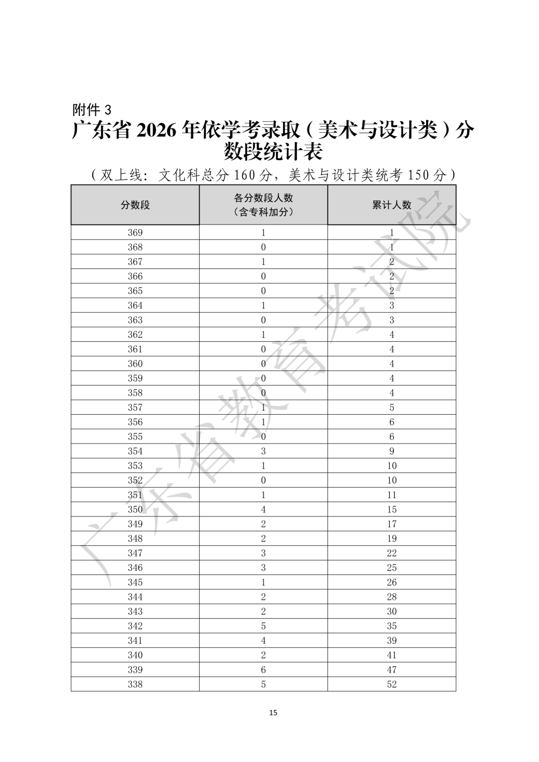 3.广东省2026年依学考录取(美术与设计类)分数段统计表
